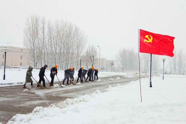 公司啟動應急預案,多次召開會議部署防范應對措施,提前落實了設備保溫防凍工作,對裝卸貨環節和廠內機動車輛加強安全管理、封閉巡檢廊道、樓梯危險路段、對原材料大棚實施定時觀測,并對廣大提貨客戶發布安全提醒。公司組織黨員突擊隊,帶領員工對廠區、后勤道路進行積雪清掃,以實際行動踐行“兩學一做”要求,有效保障了廠區主要道路安全通暢。