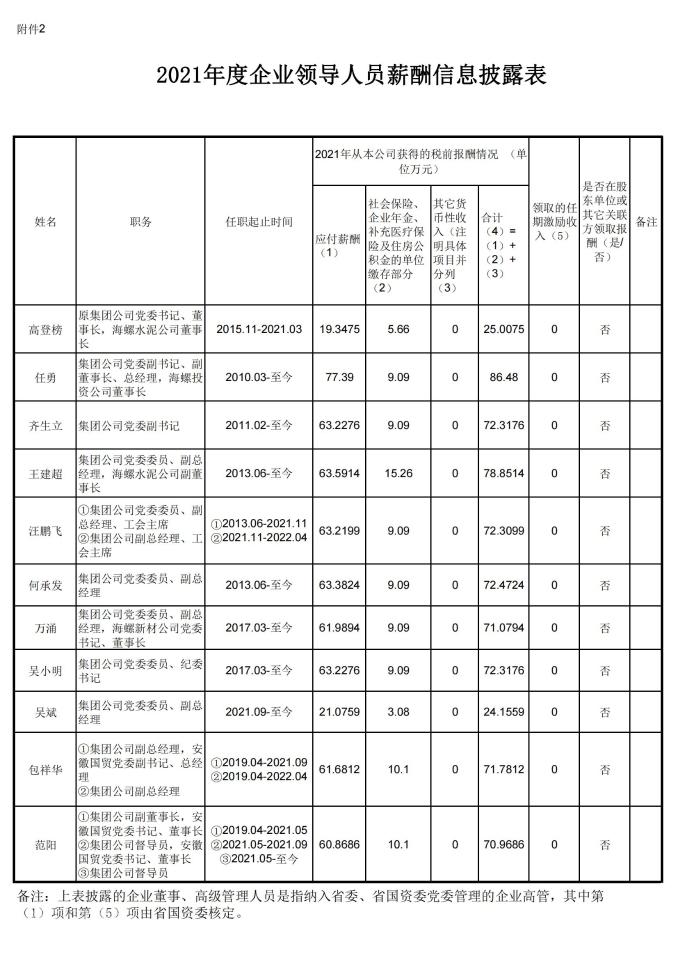 2021年度企業(yè)領(lǐng)導(dǎo)人員薪酬信息披露表