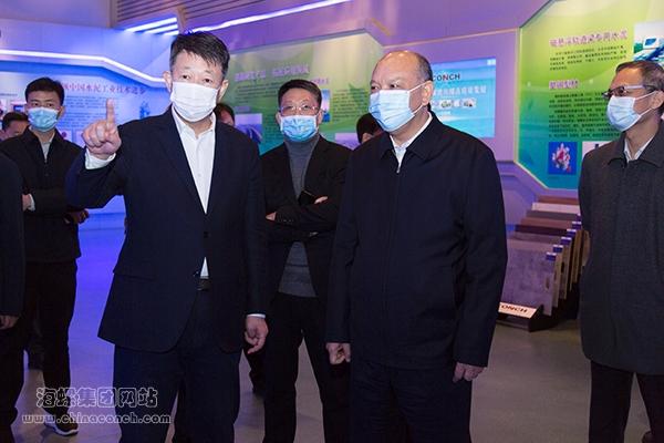 隨后,李建中一行來(lái)到海螺集團(tuán)展廳,參觀了解了海螺集團(tuán)發(fā)展歷程、產(chǎn)業(yè)布局和科技創(chuàng)新等情況。王誠(chéng)介紹,海螺集團(tuán)堅(jiān)持創(chuàng)新引領(lǐng)、數(shù)智賦能、綠色發(fā)展,實(shí)施“殲30”創(chuàng)新發(fā)展行動(dòng)計(jì)劃,打造雙跨工業(yè)互聯(lián)網(wǎng)平臺(tái),加大研發(fā)投入,加快招引創(chuàng)新人才和創(chuàng)新團(tuán)隊(duì),全力推進(jìn)雙招雙引,積極發(fā)展新材料、新能源等新興產(chǎn)業(yè),構(gòu)建全生命周期的高端化、數(shù)字化、綠色化產(chǎn)業(yè)生態(tài)圈,做強(qiáng)做優(yōu)做大主導(dǎo)產(chǎn)業(yè),做長(zhǎng)做寬做高產(chǎn)業(yè)鏈條,推動(dòng)企業(yè)加速向高新技術(shù)企業(yè)轉(zhuǎn)變、產(chǎn)業(yè)加速向戰(zhàn)略性新興產(chǎn)業(yè)轉(zhuǎn)型、管理加速向世界一流轉(zhuǎn)軌。