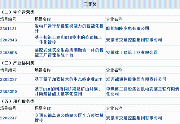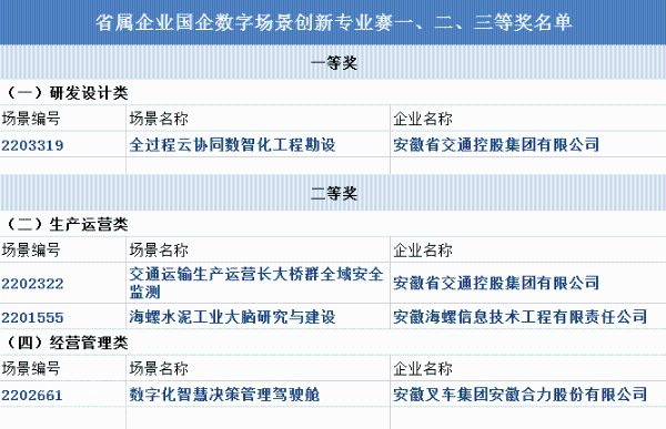 此次比賽中,安徽省屬企業(yè)共有1個應(yīng)用場景獲得一等獎,3個應(yīng)用場景獲得二等獎,6個應(yīng)用場景獲得三等獎。