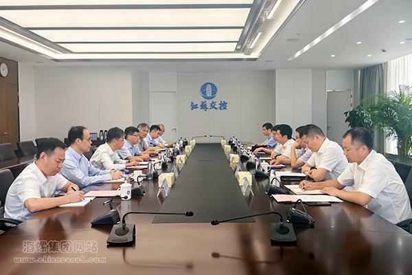 2023年8月16日,集團公司黨委書記、董事長楊軍率海螺水泥黨委書記、總經理李群峰等赴江蘇交通控股有限公司拜訪交流。江蘇交控黨委書記、董事長鄧東升,黨委副書記、總經理顧德軍,黨委委員、副總經理陳玉明等熱情接待。