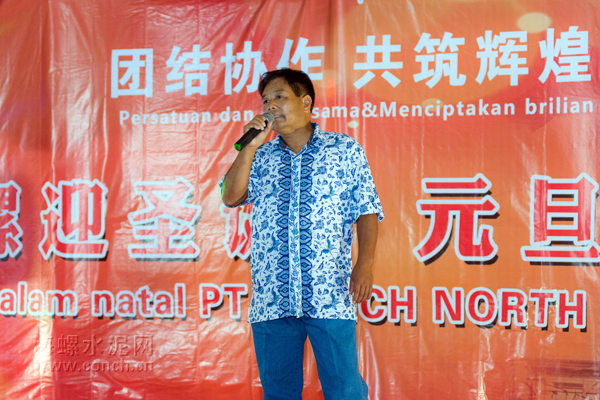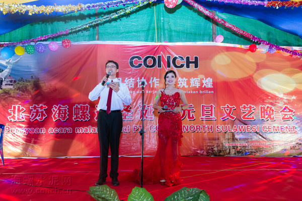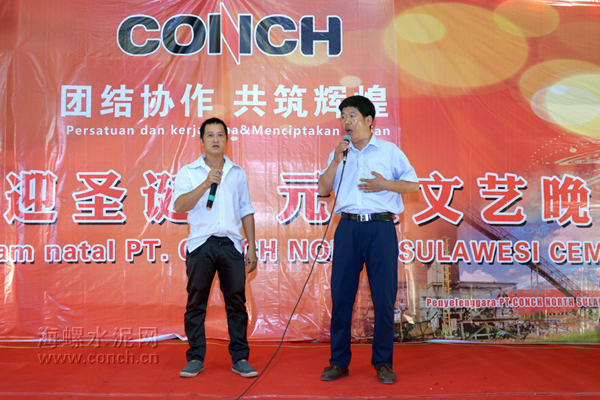 北蘇海螺總經(jīng)理曾國華、PT.SULENCO BOHUSAMI CEMENT公司董事長(zhǎng)卓瑞瑞分別為晚會(huì)致辭。他們表示,從2015年5月5日海螺水泥與PT.SULENCO BOHUSAMI CEMENT公司正式簽約并成立北蘇海螺水泥公司以來的一年半時(shí)間里,在各方的幫助與支持下,北蘇海螺全體干部員工只爭(zhēng)朝夕、奮力拼搏,項(xiàng)目已全面進(jìn)入設(shè)備安裝階段,進(jìn)展之快,不但創(chuàng)造了印尼國之最,也創(chuàng)造了中國海外投資之最。展望即將到來的一年,讓我們更加緊密的團(tuán)結(jié)起來,共筑輝煌!曾總代表公司感謝各位朋友、嘉賓的到來,向中國籍、印尼籍員工致以節(jié)日的問候。