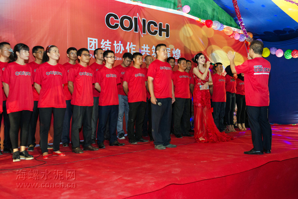晚會(huì)以全體北蘇海螺管理人員合唱的《團(tuán)結(jié)就是力量》開場(chǎng),掀開了晚會(huì)序幕,曾國華擔(dān)任合唱指揮。