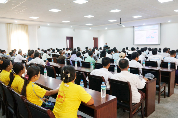 現場參觀結束后,在辦公樓三樓會議室,緬甸海螺向村民詳細介紹了緬甸海螺發展歷程、先進生產工藝、環保技術裝備、公司發展帶來的經濟社會效益及曼德勒項目規劃情況和未來預期。廣大村民聽取了介紹,并發表感言,一致認為緬甸海螺公司技術先進,為第一次看到這樣一個現代化和花園式水泥廠感到高興,非常滿意此次參觀之行,并表示要大力支持曼德勒項目建設。