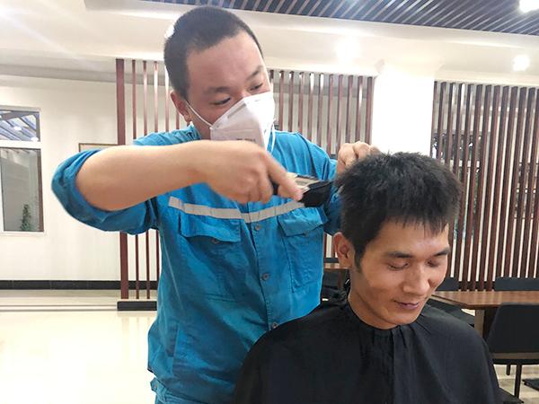 疫情期間,緬甸海螺公司實行封閉管理,為服務員工,公司大力挖掘各類手藝人,召集了一組理發志愿者,為員工提供免費理發服務。