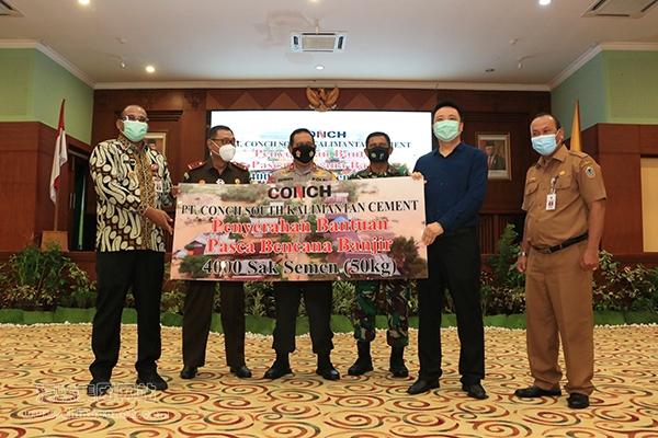 2月22日上午,印尼南加海螺水泥捐贈儀式在南加省政府大樓進行。儀式上,南加海螺副總經理王海青將4000袋水泥移贈予代理省長Safrizal ZA先生,助力南加省開展洪澇災后基礎設施重建工作。南加省檢察院長Rudi Prabowo Aji、省警察廳長Rikwanto、省軍隊長Firmansyah及相關政府人員共同出席了捐贈儀式。此次是南加海螺針對南加省洪災展開的第二次社會性捐贈。
