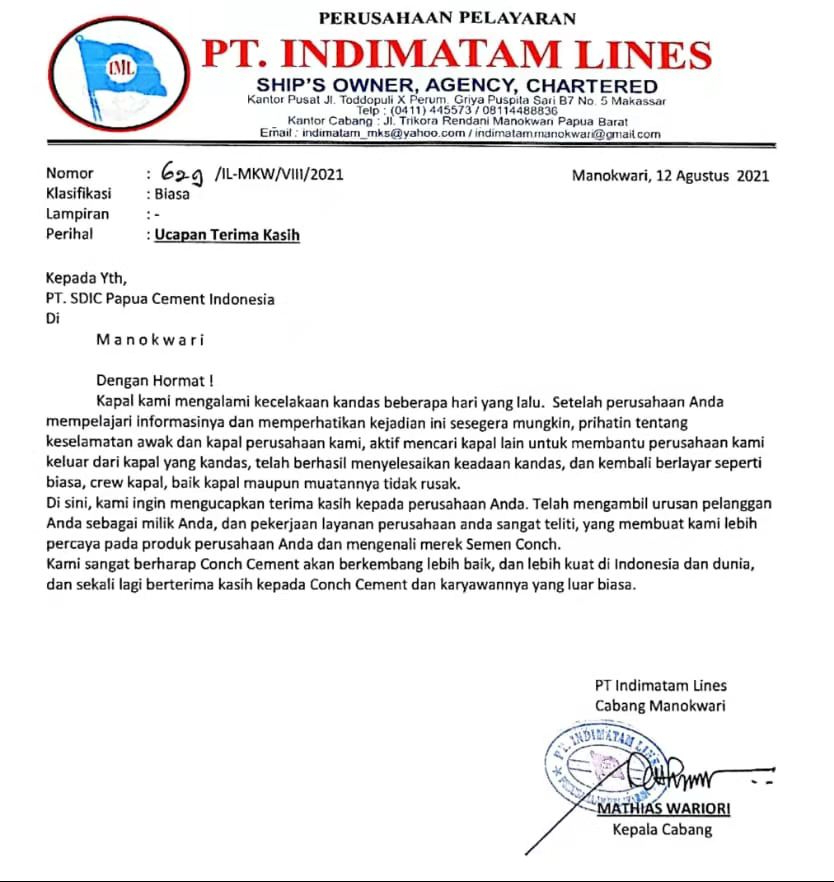2021年8月7日20時(shí),印尼西巴海螺公司接到客戶(hù)的求助電話(huà),其8月6日裝載離港的船只“INDINURMATALIA 07”在多雷里灣觸礁擱淺,客戶(hù)自提水泥貨物將面臨巨大損失,希望海螺給予幫助。